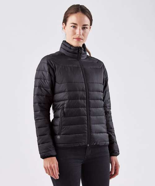 Stormtech DWR durable water-repellent outer shell. Stormtech thermal shell insulated. Articulated sleeves. Brushed Tricot hand warmer pockets. Full length inner storm flap. Embroidery access.
