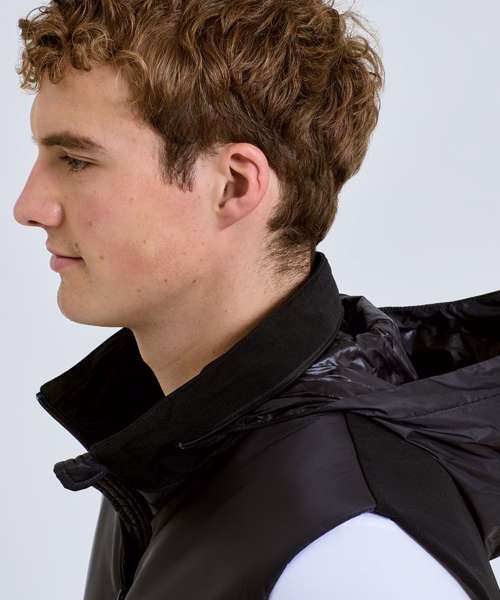 Hybrid gilet with padded panel upper chest and side seams. Lower jacket is shell fabric. Full zip-through style with collar. Drawcord inner hem. Zip side pockets. Concealed packable hood with adjustable cord and toggle to the back for to create a snug fit. Zip embroidery access to back panel and left chest. Inner pocket to left chest. Internal storm flap with zip guard. Packable bag included for handy storage of gilet when not in use. We recommend using block out vinyl and inks.Product contains no branded neck or waist label. Removable Kimble or looped garment tags. Inner seam label holds important product information on one label with a second label containing brand information which can be cut-away.