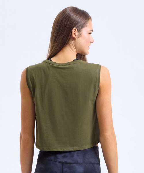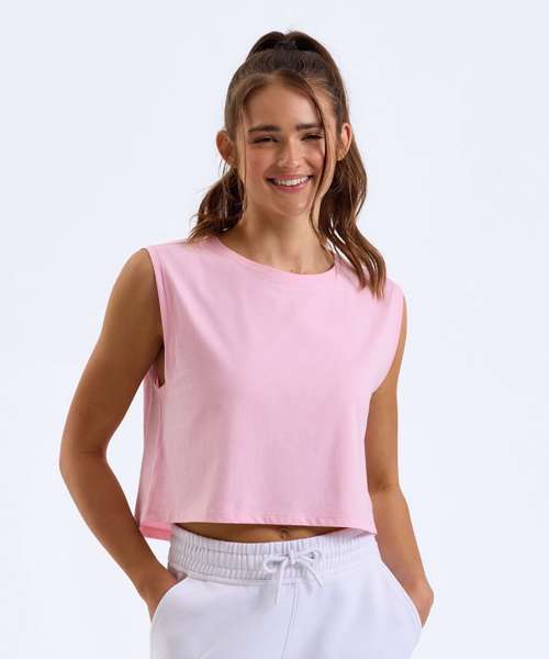 Cropped tank. Relaxed fit. Crew neck. Certified organic cotton.