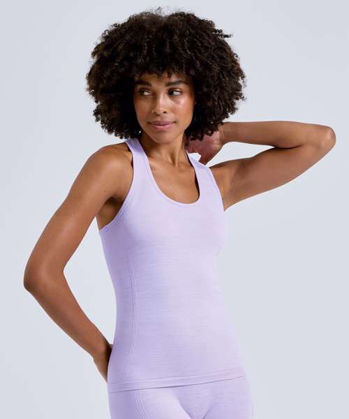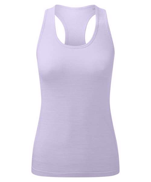 Seamless vest. Body contour detailing. Wicking fabric. Ribbed detailing to side of vest. Racerback design. We recommend using block out vinyl and inks.Product contains no branded neck or waist label. Removable Kimble or looped garment tags. Inner seam label holds important product information on one label with a second label containing brand information which can be cut-away.
