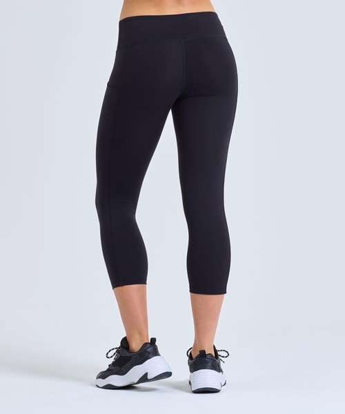 3/4-length leggings. Soft-stretch fabric. Elasticated waistband. Black inner waistband and coin pocket. Side panels to legs with hidden insert pocket. Recycled Polyester. We recommend using block out vinyl and inks.Product contains no branded neck or waist label. Removable Kimble or looped garment tags. Inner seam label holds important product information on one label with a second label containing brand information which can be cut-away.