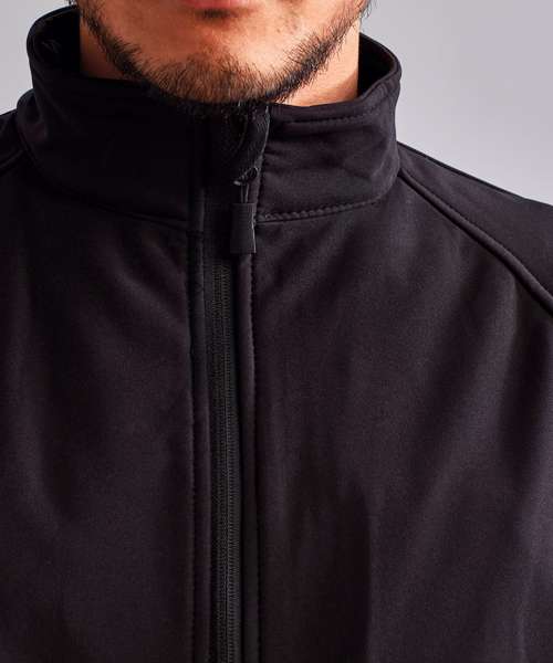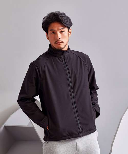 Reliable 3 layer bonded soft shell jacket. Zip through cadet collar with storm flap and chin guard. Sheds light wind and rain. Breathable. Interior smartphone friendly pocket. Storm cuffs. Shaped to fit. Inside zip closed pocket. Concealed inside zip for decoration access. Two front zippered pockets. Adjustable drawcord at hem. Windproof and water resistant. Easy re-label system. Product contains no branded neck label.* Removable Kimble or looped garment tags. Inner seam label holds important product information on one label with a second label containing brand information which can be cut-away.