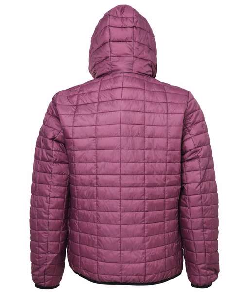 Contrast coil zip on centre front with signature zip puller and mouse tail piping on each side of zip opening. Front and back square stitched baffles with linear side narrow baffles. 250gsm lightweight polyester fill. Fully-lined in tonal polyester. Inset welt pocket with concealed zip opening and double zip garages. Contrast stretch binding on hem, cuffs and hood opening for added protection. Internal piping around inside facing. Secure hood attached to collar. Internal zipped opening on back panel for embroidery access. Internal welt pocket. Product contains no branded neck label.* Removable Kimble or looped garment tags. Inner seam label holds important product information on one label with a second label containing brand information which can be cut-away.