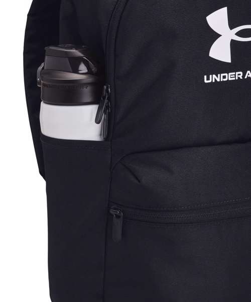 Water-resistant UA Storm technology keeps your stuff dry. One zip-shut main compartment and front valuables pocket. Side water bottle pocket. Top grab handle.